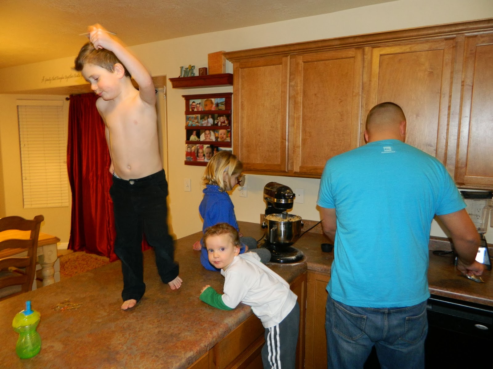 Alas, we finally purchased 4 stools from DI. Although, they hang out on the counter more often than before, especially Travis, because of the amazing access up there. Gotta love being a kid!
